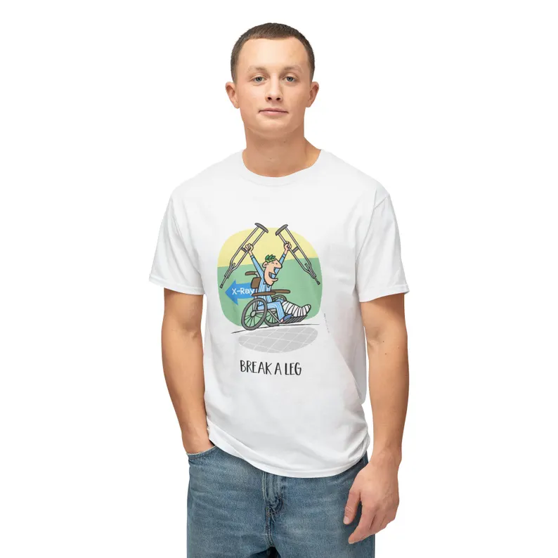 Wish someone Good Luck by making them a present of “BREAK A LEG” tee or mug